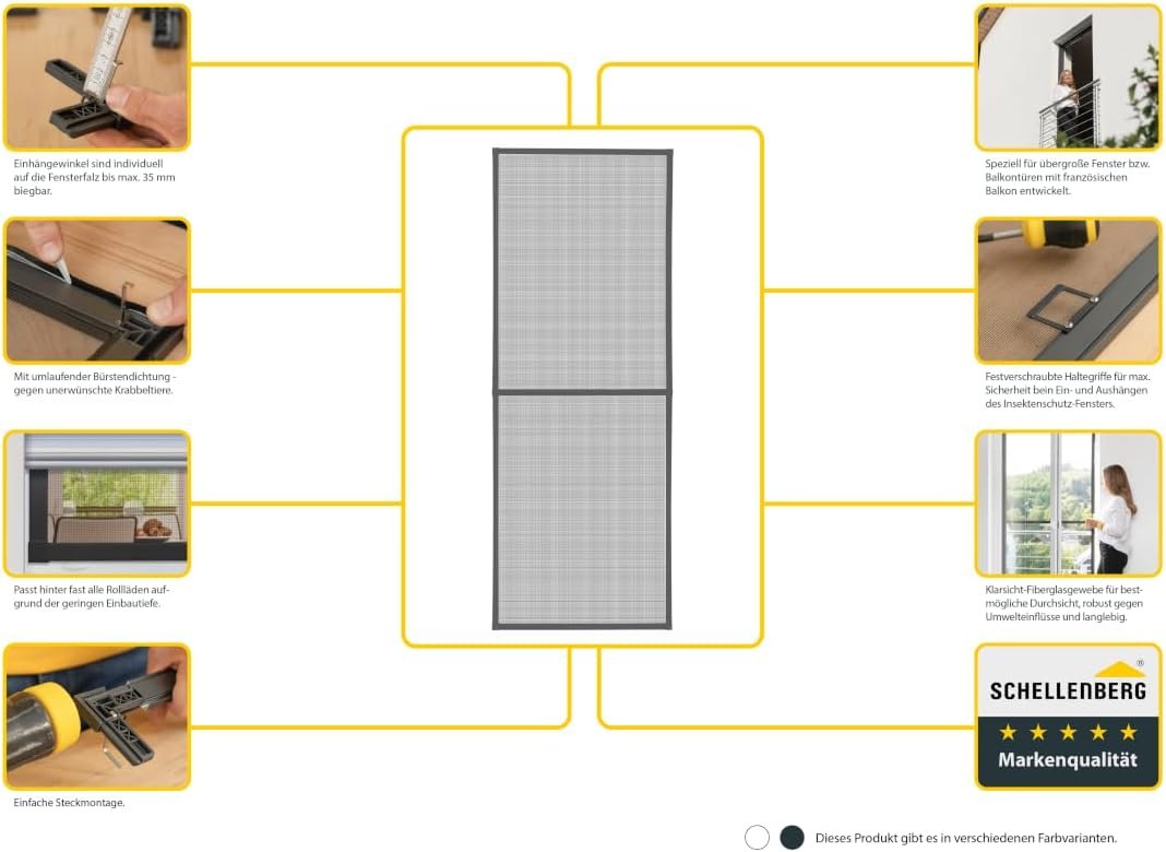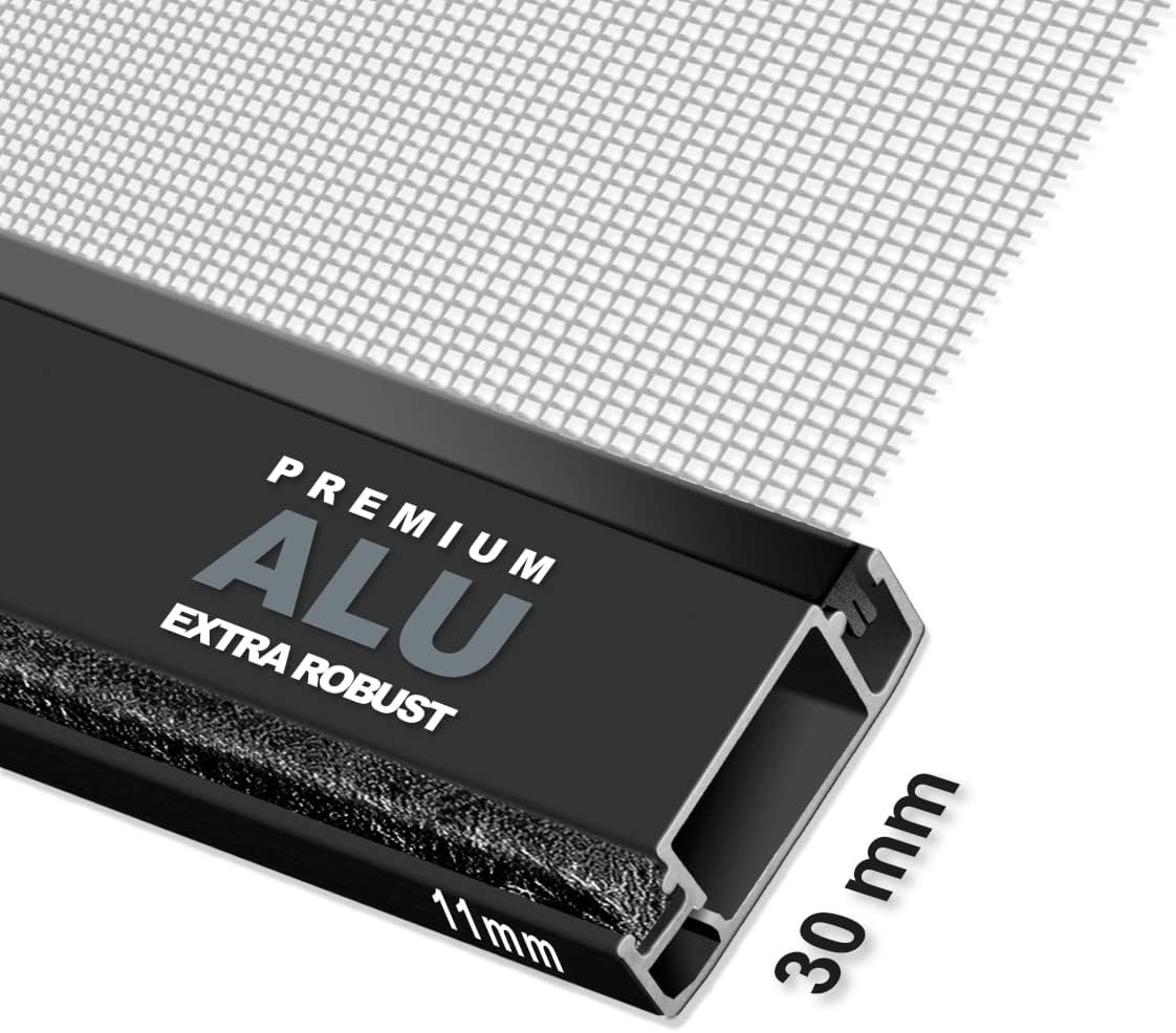 Die PREMIUM Insektenschutz-Lösungen mit langlebigem KLARSICHT-Fiberglas-Gewebe im stabilen Aluminium-Rahmen, halten Wohnräume zuverlässig frei von Insekten wie Fliegen, Mücken, Wespen und Kriechtieren. Neben der hervorragenden Durchsicht ermöglicht das PREMIUM Gewebe eine bis zu 30 % bessere Luftzirkulation sowie eine bis zu 40 % bessere Durchsicht im Vergleich zu herkömmlichem Fiberglas-Gewebe. Zudem ist das Gewebe UV-stabil, reißfest und abwaschbar. Eine umlaufende Bürstendichtung sorgt für zusätzlichen Schutz gegen Kriechtiere.