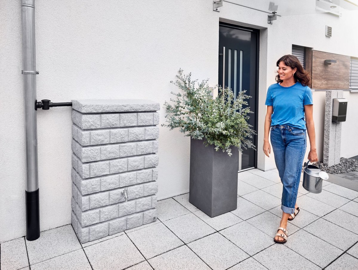 - Witterungsbeständig - Der Regenwasserbehälter ist Witterungseinflüssen und Sonneneinstrahlung ausgesetzt. Auf diese Bedingungen abgestimmte Materialien sorgen für eine lang anhaltend gute Optik
