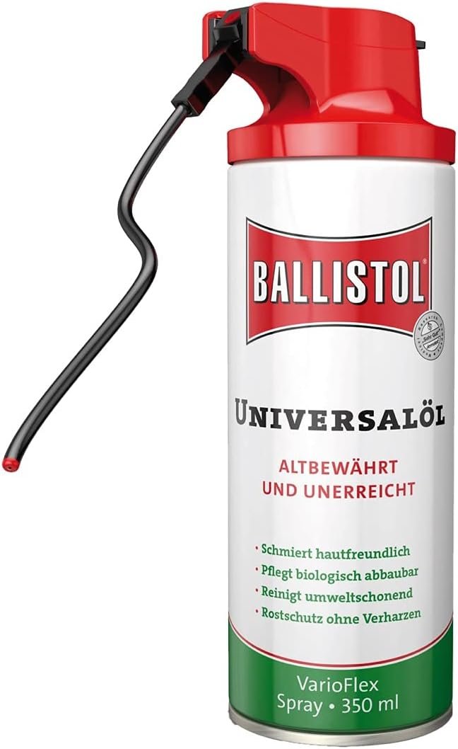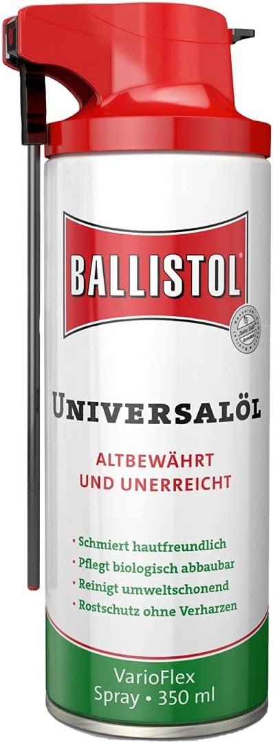 Ob für Handwerk, Haus oder Hobby, ob zum Pflegen, Schützen, Reinigen oder Schmieren, ob daheim, am Arbeitsplatz oder unterwegs – Ballistol Universalöl ist das richtige Öl für 1.000 Fälle und mehr. Es wird als Rostschutz, Schmieröl, Pflege- und Reinigungsmittel eingesetzt und glänzt dabei seit 120 Jahren mit vielen hervorragenden Eigenschaften.
