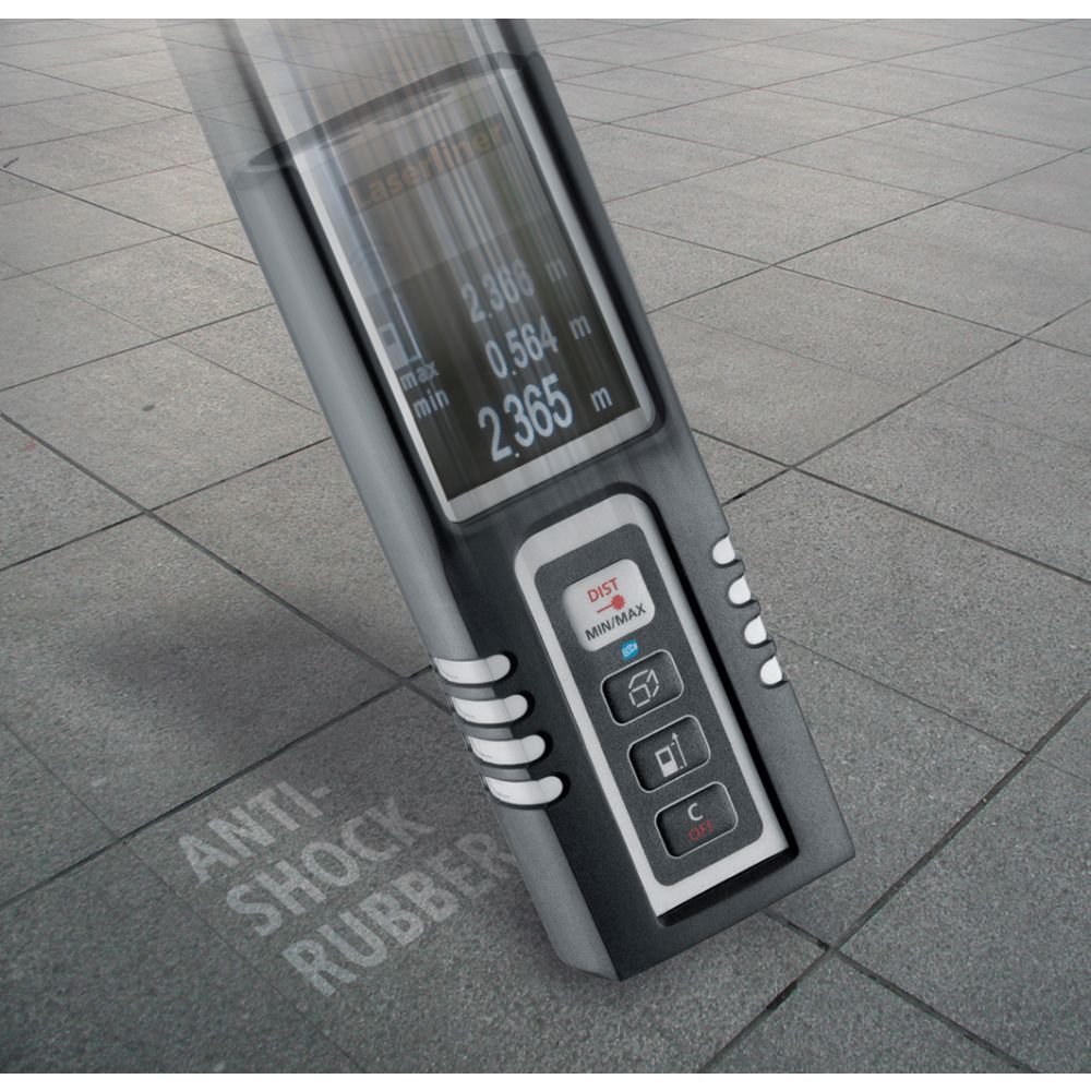 Der punktgenaue Laser-Entfernungsmesser ist ideal zum Erfassen von Längen, Flächen und Volumen, beispielsweise bei dem Ermitteln von Raumgrößen und Kalkulieren von Materialmengen. Per 360°-Neigungssensor lässt sich waagerechte und senkrechte Distanz bestimmen. Das Gerät verfügt über umschaltbare Messebenen, ein beleuchtetes, dreizeiliges Display und ein ergonomisches Gehäuse mit Schutzgummierung. Über die Digital Connection-Schnittstelle können die Messdaten einfach auf das Smartphone übertragen werden.