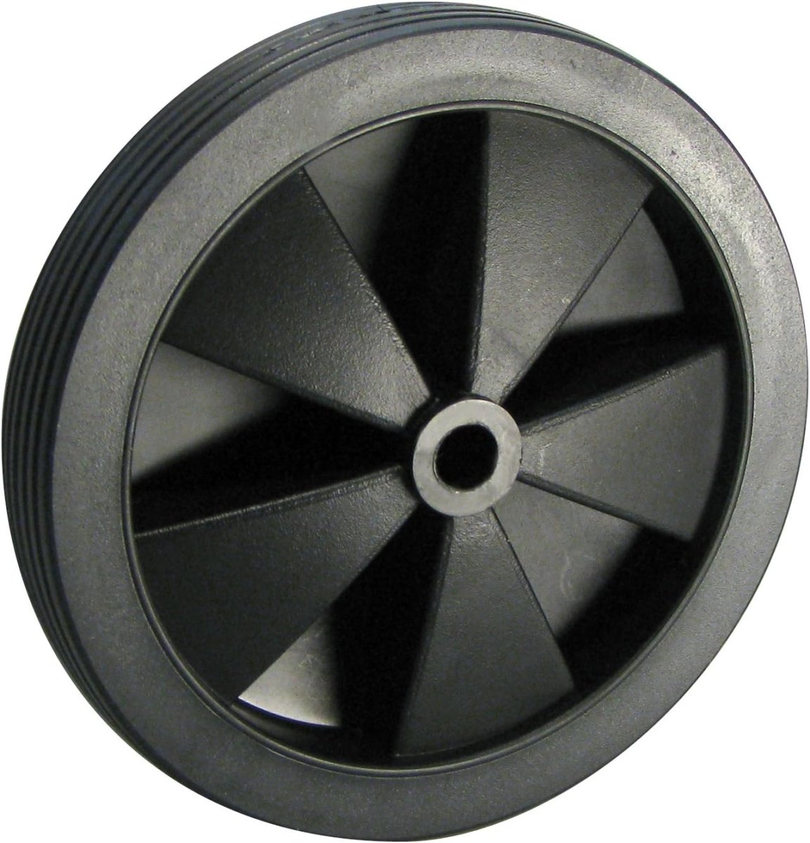 Leichtes Rad mit schwarzer Kunststofffelge, Gleitlager und Rillenprofil.