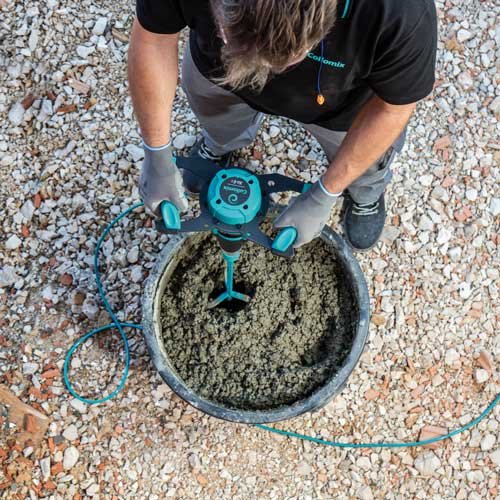 Rührer mit hohen Scherkräften, verhindert Klumpenbildung, ideal für zementbasierte Kleber und verlaufende Spachtelmassen; gut für Epoxydharz-Mischungen, da wenig Lufteinschlüsse. Leicht zu reinigen.