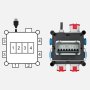 - Steckdosen: 2x CEE 400 V/16 A 5-polig/-pin, 1x CEE 400 V/32 A 5-polig/-pin, 4x 230 V/16 A