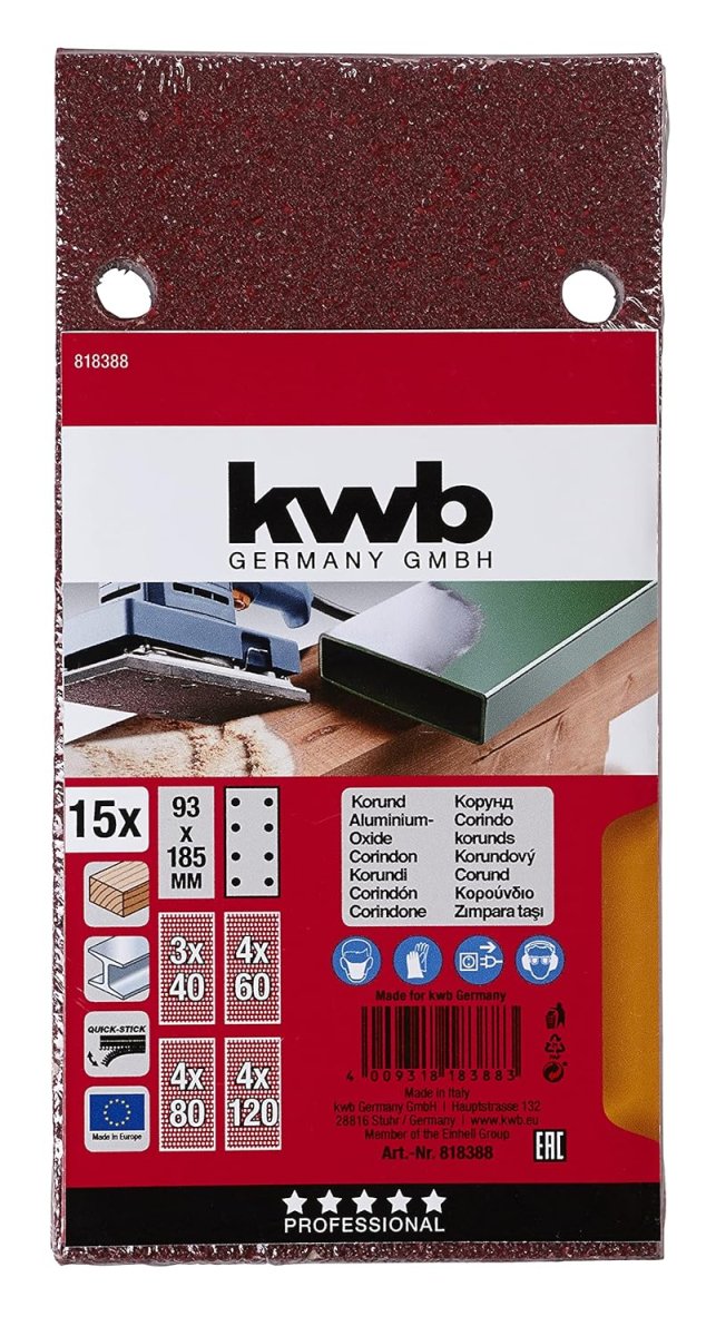 Shop » Detailansicht kwb Quick-Stick Edelkorund-Schleifstreifen-Set - 93 x 185 mm - K 40-120 - 15-tlg.