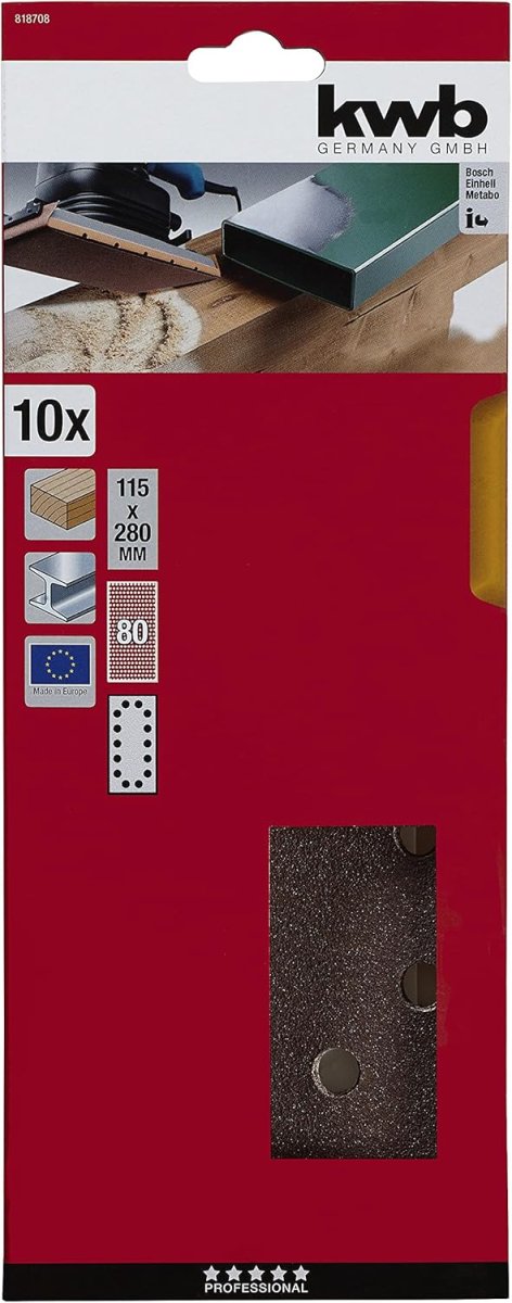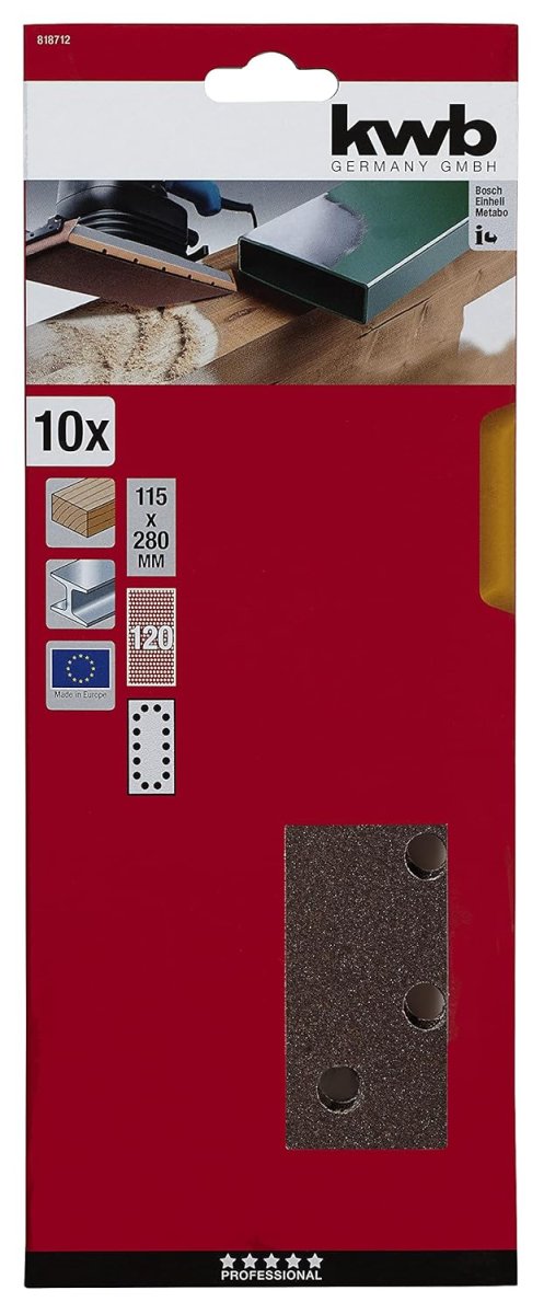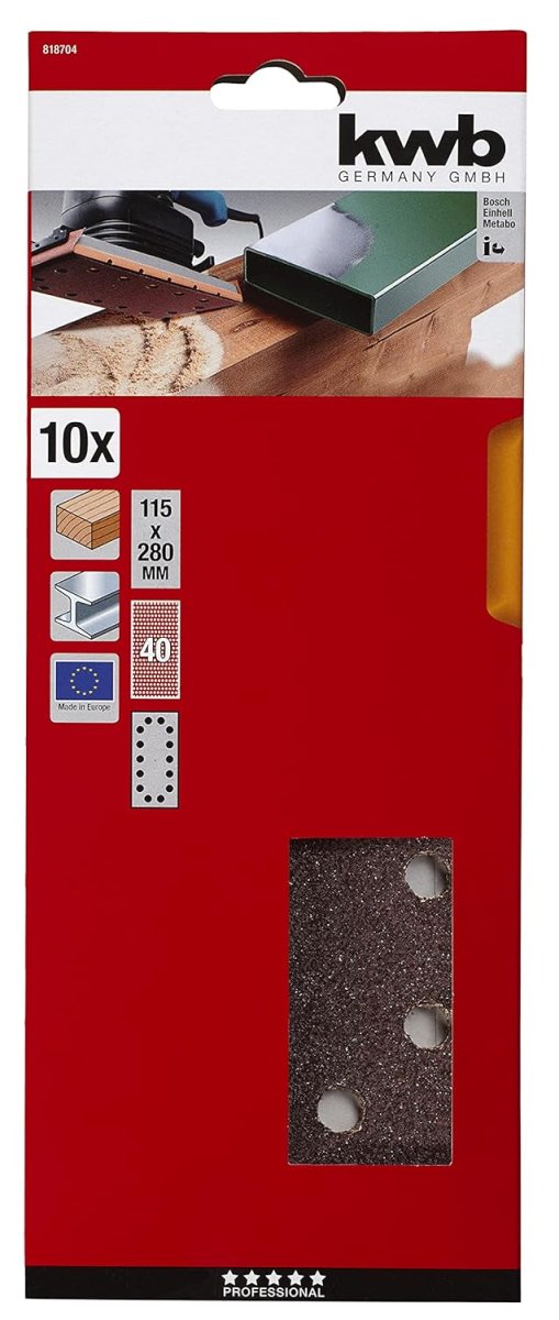 Shop » Detailansicht kwb Schleifstreifen gelocht - 115 x 280 mm - 10-tlg. - verschiedene Körnungen