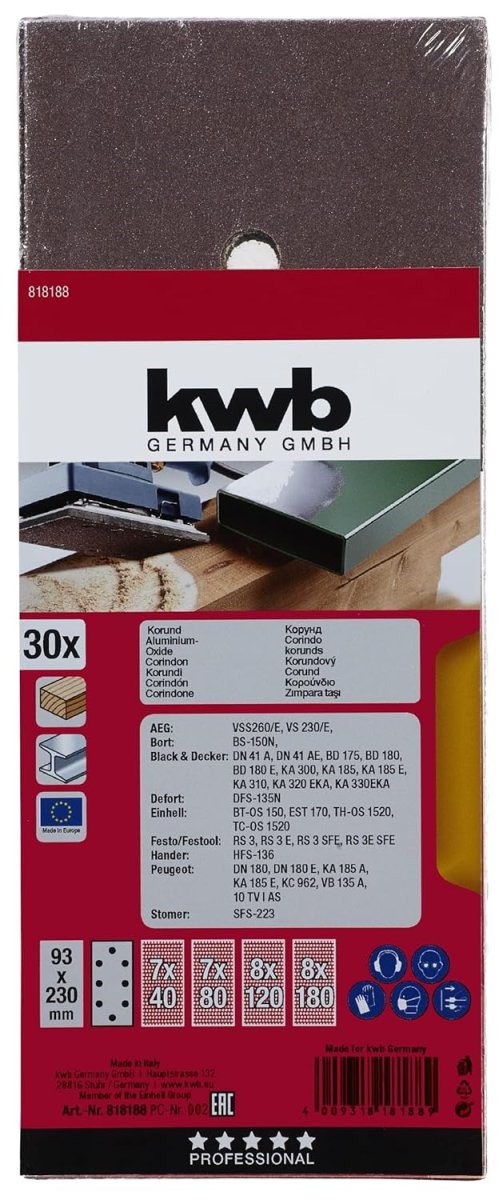 Shop » Detailansicht kwb Korund-Schleifstreifen-Set - 93 x 230 mm - K 40-180 - 30-tlg.