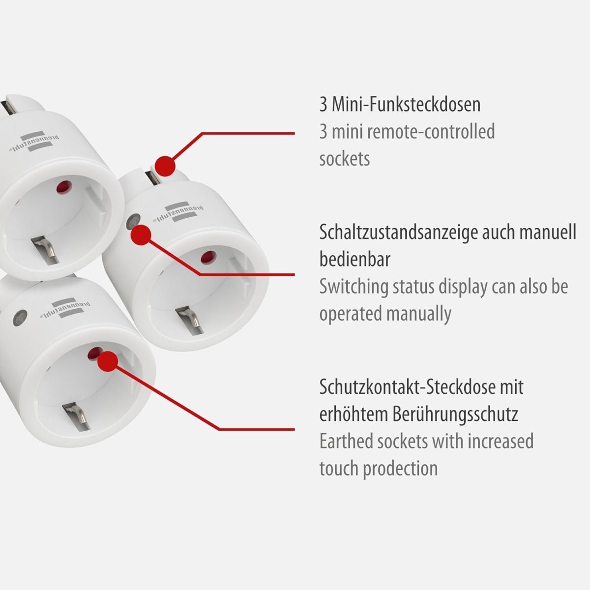 - Lieferumfang: 3 x Funk-Schaltempfänger, 1 x Handsender, 1 x Batterie Typ CR2032 in der Farbe weiß - in bester Qualität von brennenstuhl®