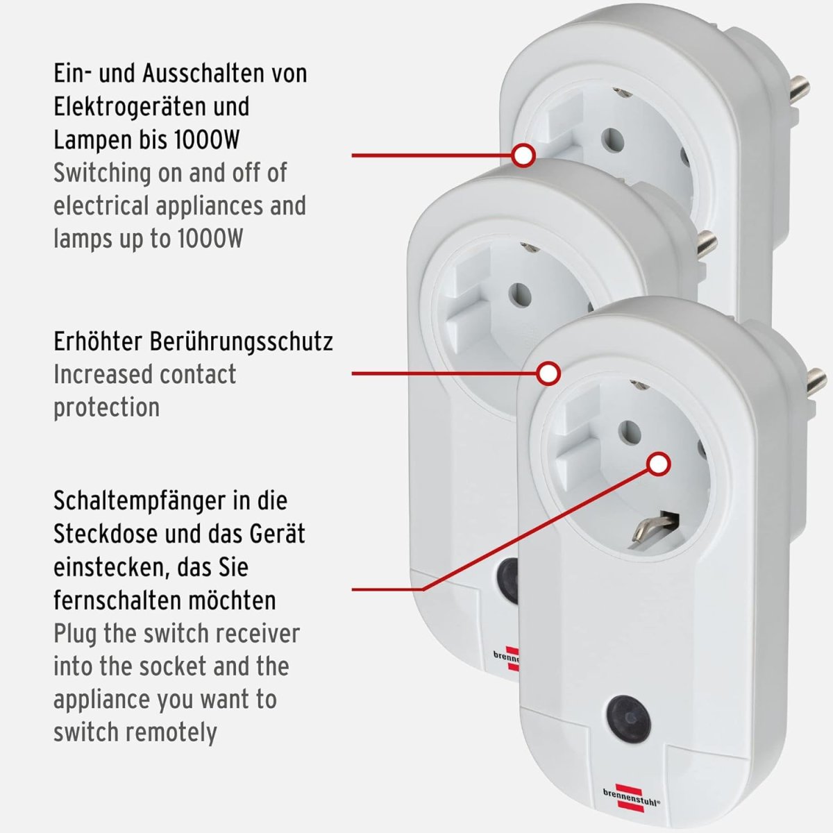 - Lieferumfang: 3 x Funk-Schaltempfänger, 1 x Handsender, 1 x Batterie Typ CR2032 (3 V) in der Farbe weiß - in bester Qualität von brennenstuhl®