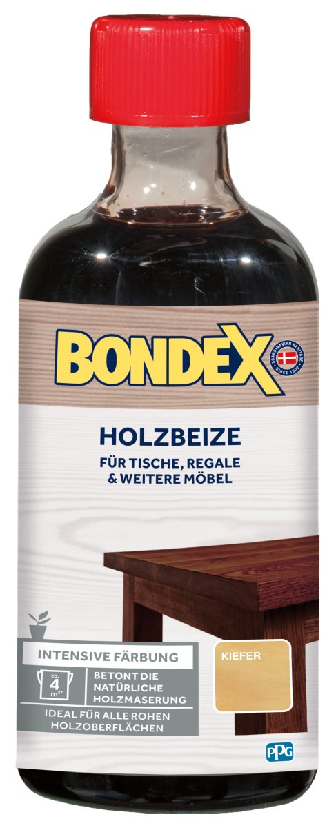 BONDEX HOLZBEIZE ist eine flüssige Farbstoffbeize, die eine intensive Färbung für Regale, Kommoden und alle weiteren rohen Holzoberflächen im Innenbereich verleiht.