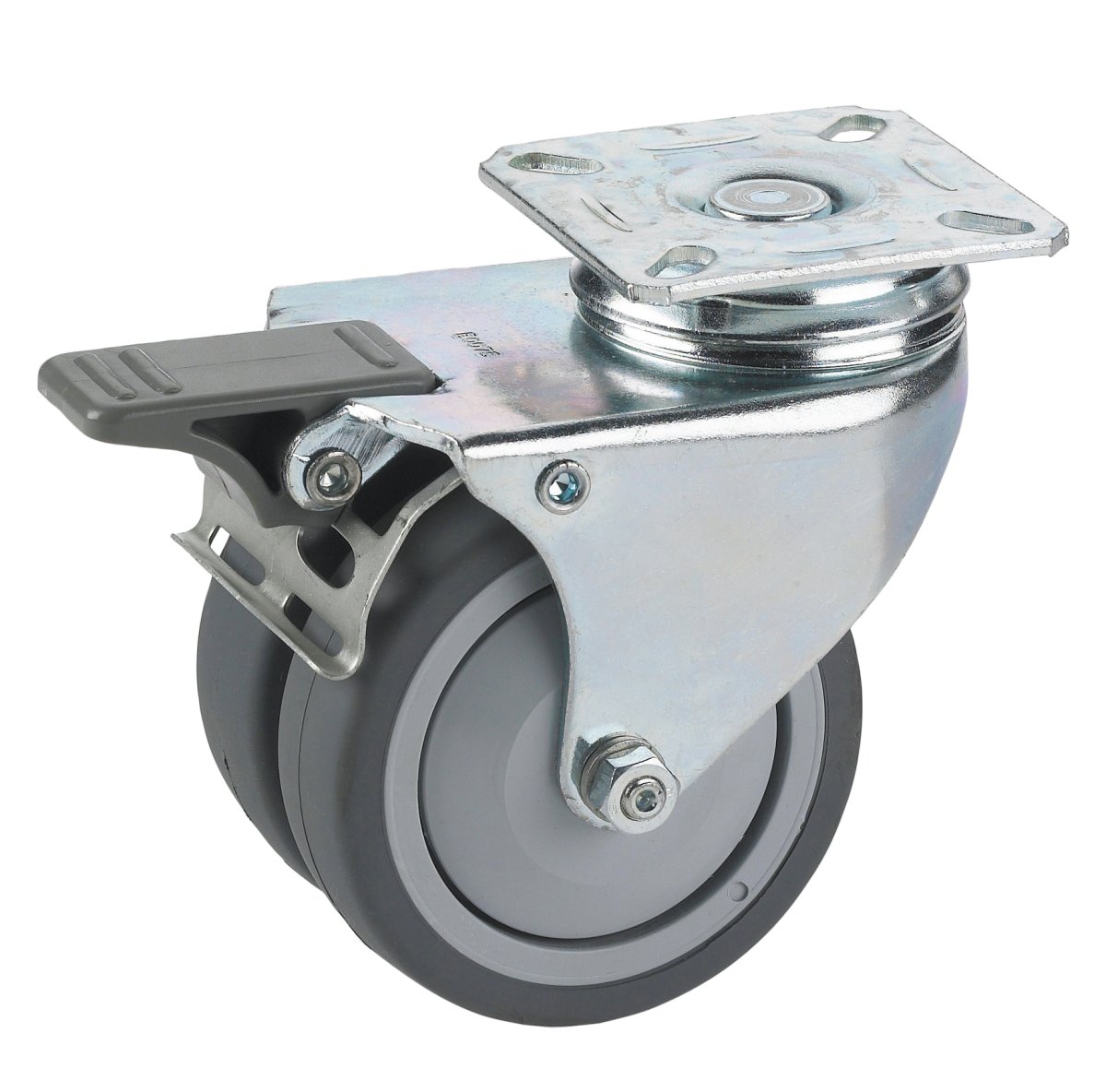Apparate-Doppel-Lenkrolle mit TPE-Lauffläche und Totalfeststeller