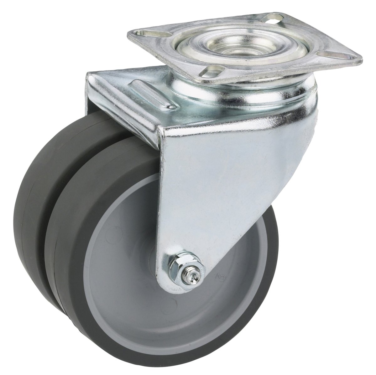 Apparate-Doppel-Lenkrolle mit TPE-Lauffläche, Gehäuse mit Platte, verzinkt.