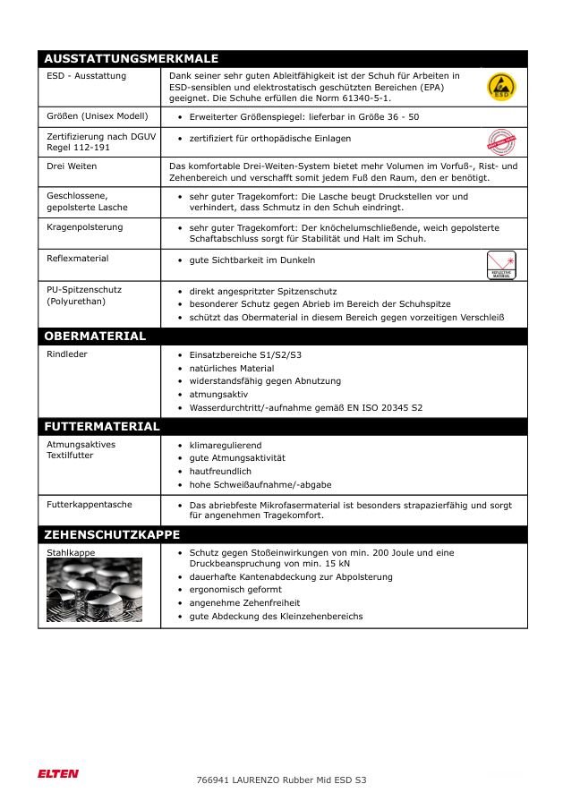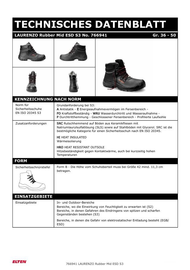 Shop » Detailansicht ELTEN LAURENZO RUBBER MID ESD S3S - Sicherheitsschnürstiefel