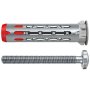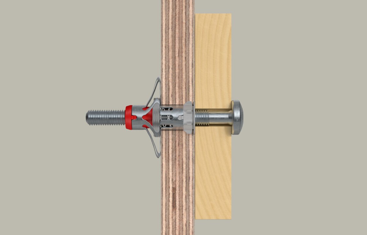 - Die einzigartige 2-Komponenten-Technologie erfüllt hohe Lastanforderungen. Die Metallhülse presst sich an die Plattenrückwand und der Nylon Grundkörper verknotet sich im Baustoff.