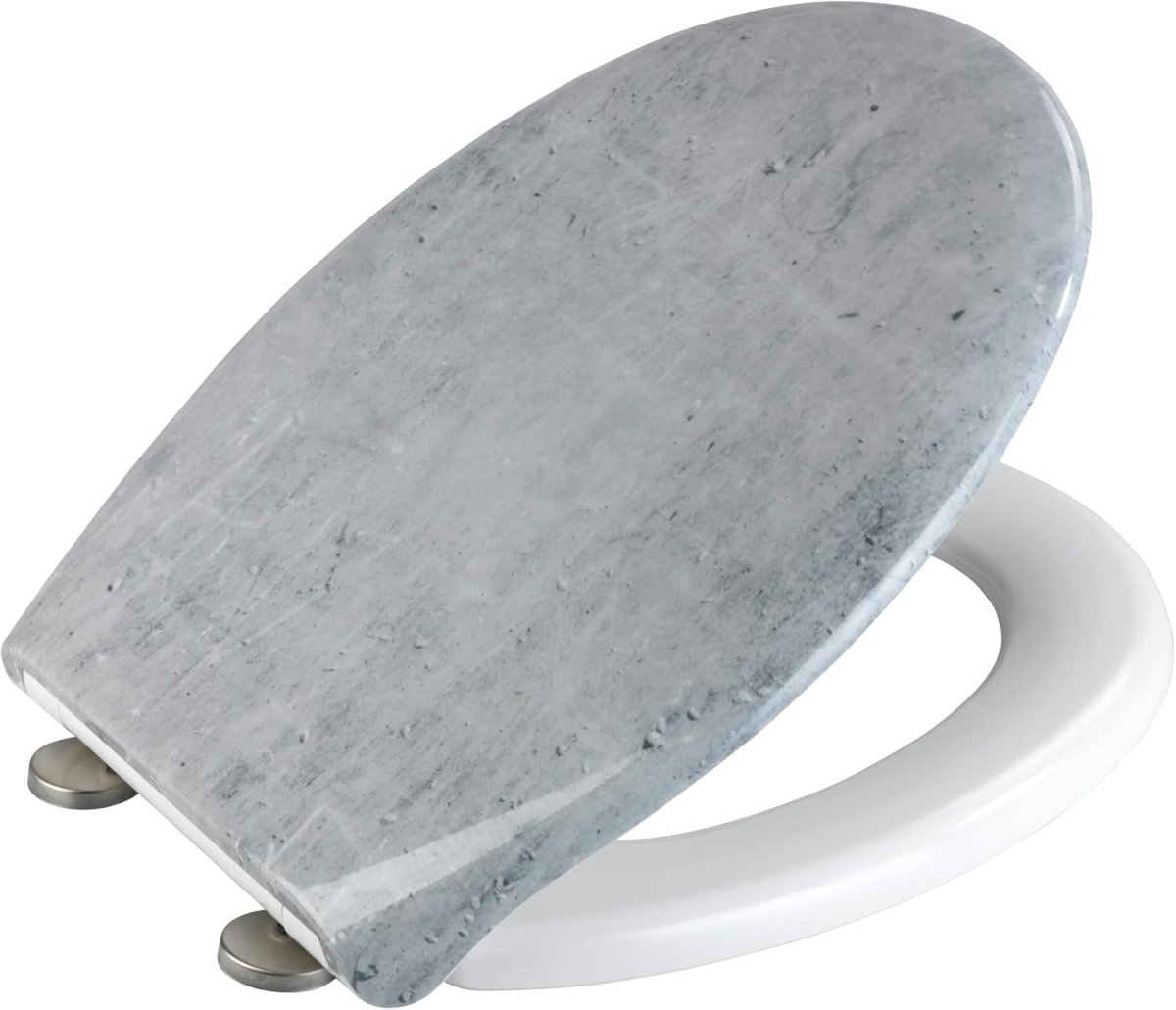 Der schöne WC-Sitz Concrete ist aus Duroplast hergestellt. Duroplast WC-Sitze werden in einem aufwendigen thermomechanischen Verfahren hergestellt und vereinen hochwertige Qualität und Funktionalität. Daher eignet er sich auch sehr gut zum Einsatz auf Toiletten mit erhöhtem Publikumsverkehr, wie z.B. in Geschäften, Praxen oder Büros, da er sehr kratzfest, bruchsicher und strapazierfähig ist. Die hygienische Oberfläche ist zudem leicht zu reinigen.