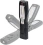 Die akkubetriebene Arbeitsleuchte HL 201 A eignet sich ideal als handliche und kompakte Lichtquelle für Arbeiten im Haushalt, in Werkstätten oder auch für Reparaturarbeiten im Kfz-Bereich. Die knickbare Handleuchte lässt sich dank integriertem Magnet und 360° drehbarem, einklappbarem Haken flexibel befestigen und sorgt immer für eine perfekte Ausleuchtung am Einsatzort. Die leuchtstarke LED Taschenlampe mit Akku verfügt über 4 superhelle SMD-LEDs und einer zusätzlichen Schaltstufe für eine SMD-LED im Leuchtenkopf. Die Arbeitsleuchte mit Ein/Aus Schalter überzeugt außerdem durch folgende Eigenschaften: