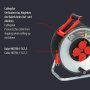 - Kabeltrommel mit 4 Schutzkontakt-Steckdosen (spritzwassergeschützt, mit selbstschließenden Deckeln) und robustem Schutzkontakt-Stecker