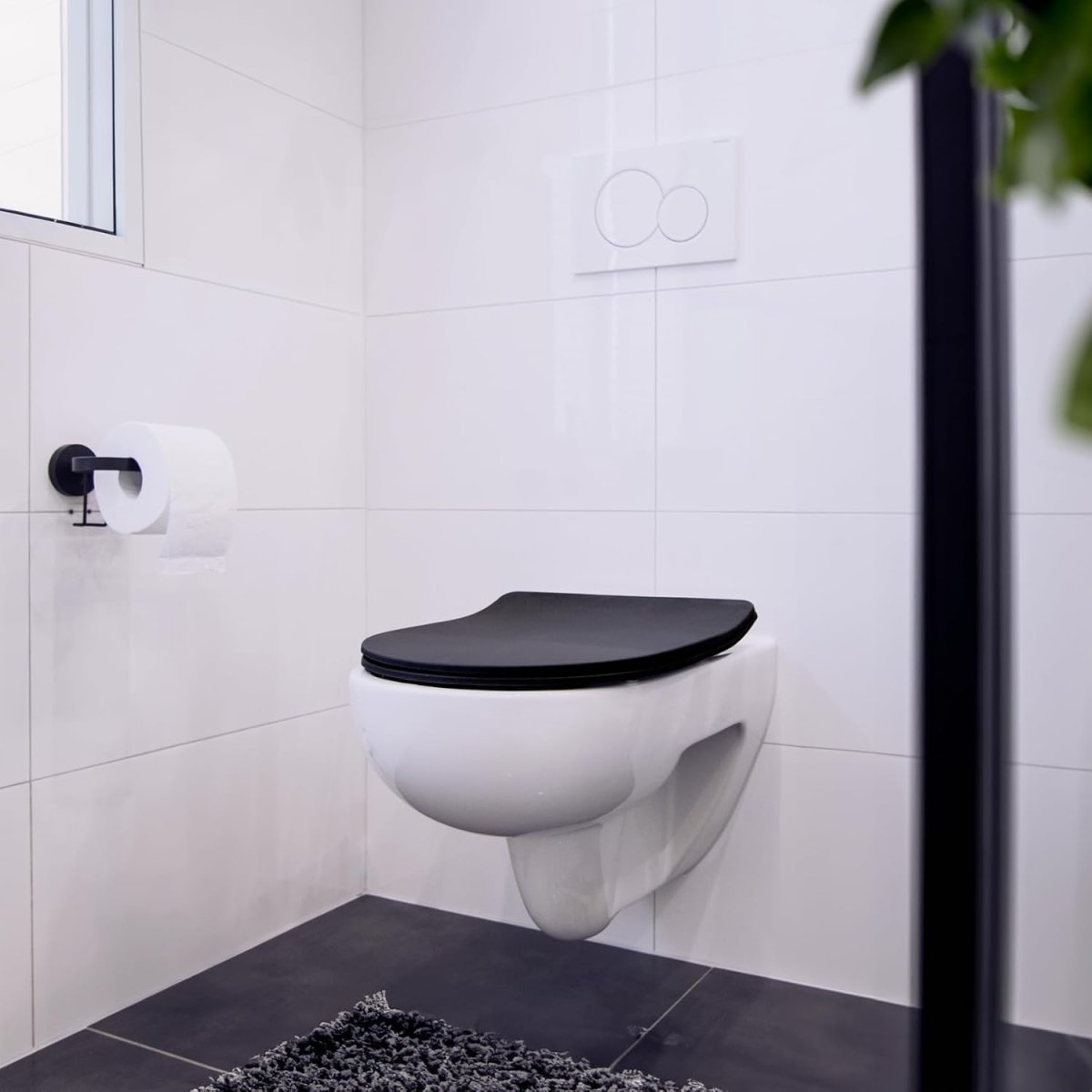 Der hochwertig verarbeitete WC-Sitz Sedilo aus antibakteriellem Duroplast in mattem Schwarz überzeugt durch seine elegante, schmale Optik und bringt edles Design in jedes Bad und Gäste-WC.