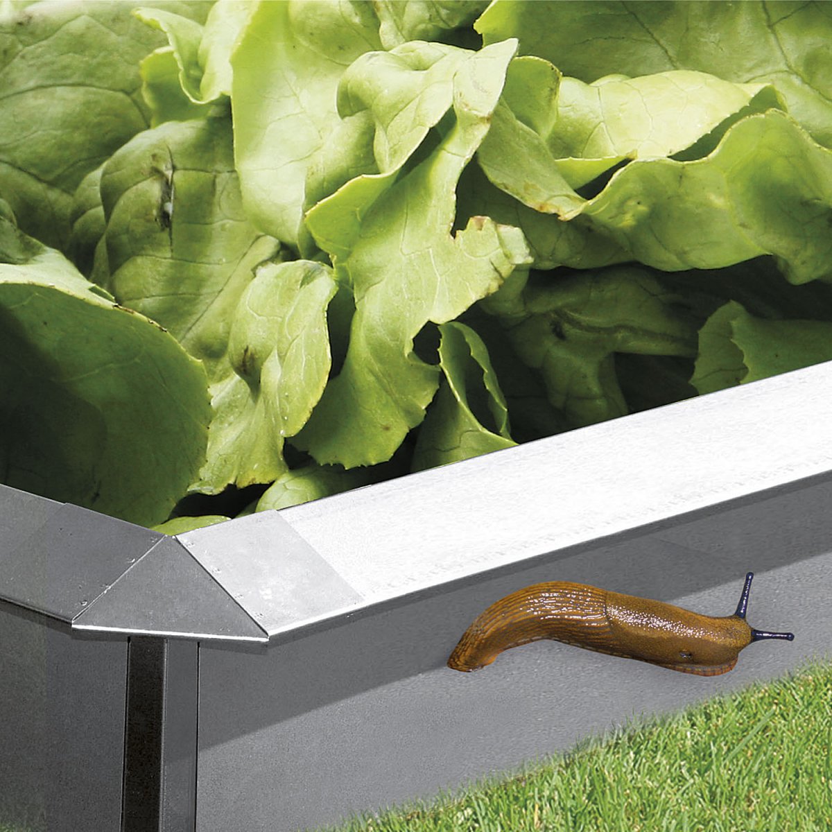 Verzinktes Stahlblech mit nach außen 2-fach gefalztem Rand bildet Schutz vor Schnecken durch die besondere Bauform.