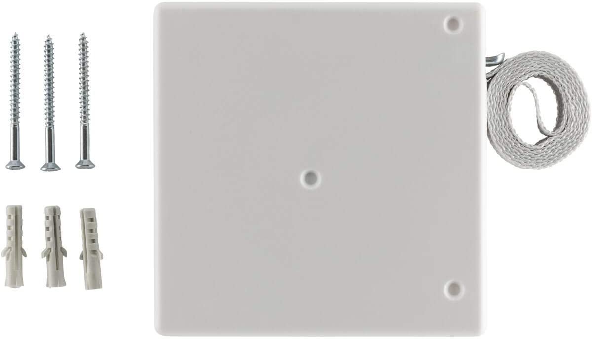 Der Gurtwickler verfügt über die Maße 22 x 120 x 120 mm und der Lochabstand zur Anbringung des Gurtwicklers beträgt 9,5 cm. Die benötigten Schrauben und Dübel sowie ein vormontiertes graues Gurtband mit einer Länge von 5,0 Metern sind im Lieferumfang enthalten.