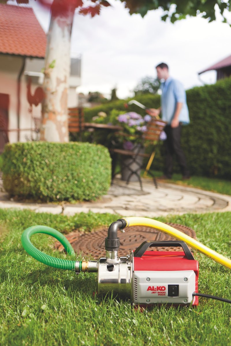 Ob Brunnen, Zisternen oder Regenfass – die Wasserpumpe Jet 3000 Inox Classic saugt durch das eingebaute Jet-System das Wasser innerhalb kürzester Zeit mühelos an.
