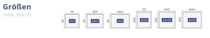 - Außenmaße (B x T x H): 404,5 x 312 x 264 cm