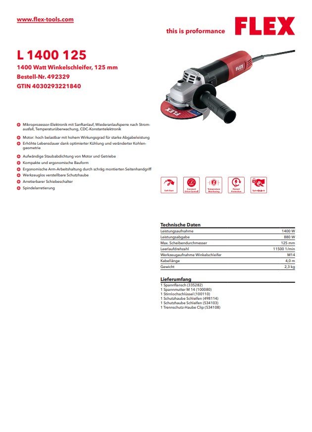 Shop » Detailansicht FLEX Winkelschleifer L 1400 125 - 1400 W - Ø 125 mm