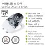 Die integrierte Easy-Close Absenkautomatik macht endlich Schluss mit dem lästigen Geräusch von zuklappenden WC-Sitzen und Fingerquetschen. Leichtes Antippen genügt - und schon schließt sich der Deckel ganz von selbst. Geräuschlos und sanft. Einfach schwerelos.