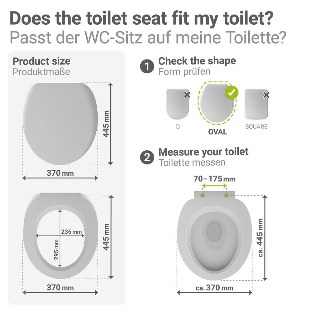 Dieser hochwertige WC-Sitz aus strapazierfähigem Thermoplast bietet nicht nur eine ansprechende Optik, sondern auch höchste Bruchstabilität. Mit einer Belastbarkeit von bis zu 300 kg, die durch ein akkreditiertes Labor bestätigt wurde, erfüllt er selbst die höchsten Ansprüche an einen bruchstabilen WC-Sitz.