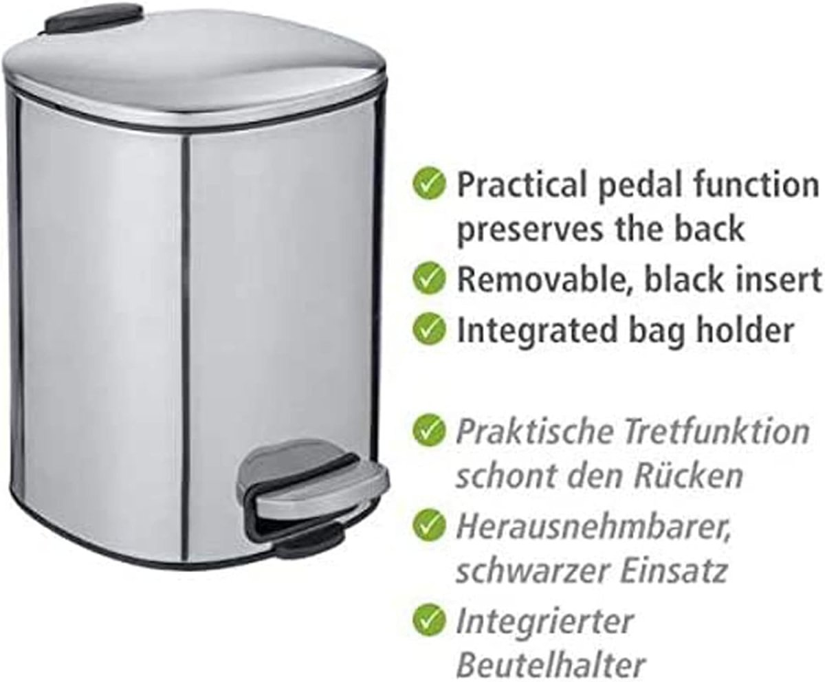 Der hochwertige Treteimer aus der Alassio-Serie von WENKO aus Edelstahl überzeugt durch seine Qualität und sein glänzendes Finish.