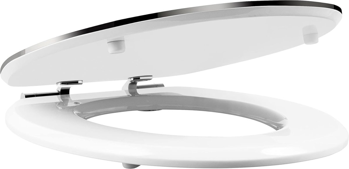 WC-Sitz PRIME - MDF, weiß - mit silberfarbener Edelstahlkante