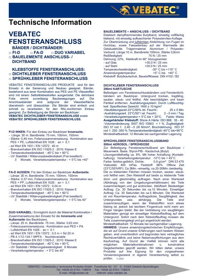 Zubehörartikel für Vebatec Fensteranschlussband DUO VARIABEL
