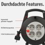 - Leichte und handliche Mini-Kabeltrommel mit 4 Schutzkontakt-Steckdosen, einem Überhitzungsschutz und erhöhtem Berührungsschutz