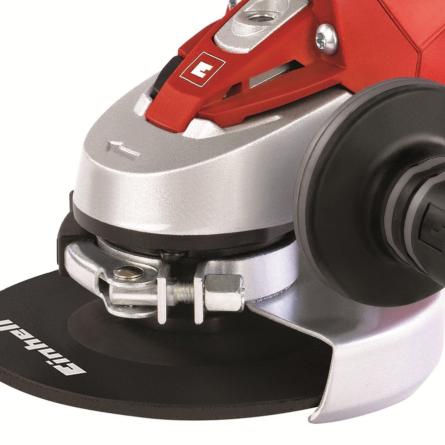 Der Scheibenschutz des universell einsetzbaren Winkelschleifers lässt sich dank Schnellverstellung im Handumdrehen an jede Aufgabe anpassen. Eine Spindelarretierung sorgt für einfache, schnelle Werkzeugwechsel.