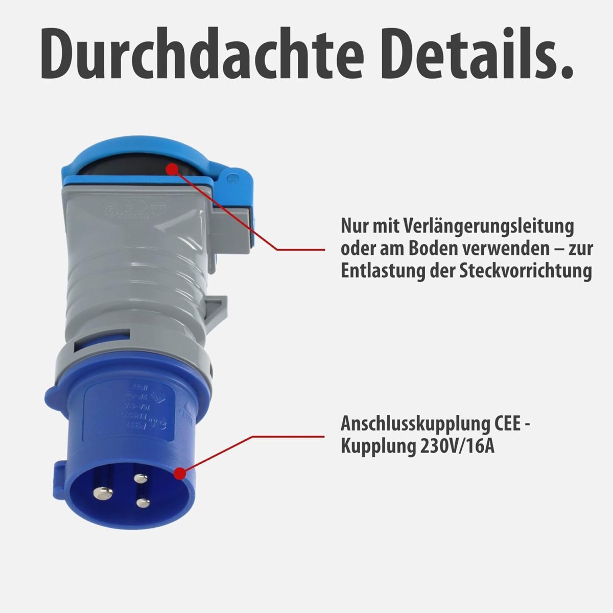 - Anschlusskupplung: CEE -Kupplung 230V/16A