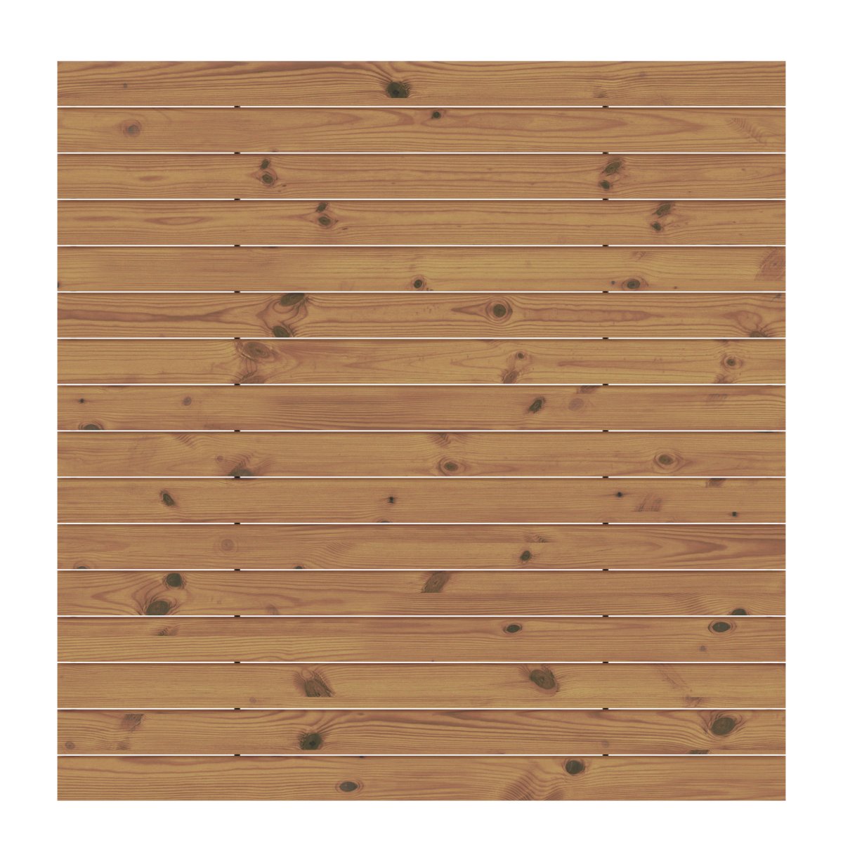 Das Zaunfeld-Set aus Thermokiefer besteht aus 16 massiven Profilen in Rhombusform.