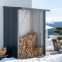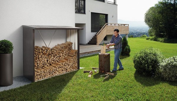 Besonders praktisch erweist sich der Brennholzunterstand zum Anbau an die Hauswand. Die zusätzlich erhältliche Rückwand schützt dabei die Hauswand vor Beschädigungen durch gelagertes Holz.