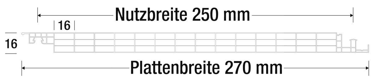 - Breite: 270 mm, Nutzungsbreite: 250 mm