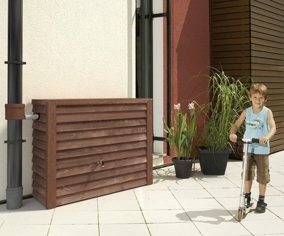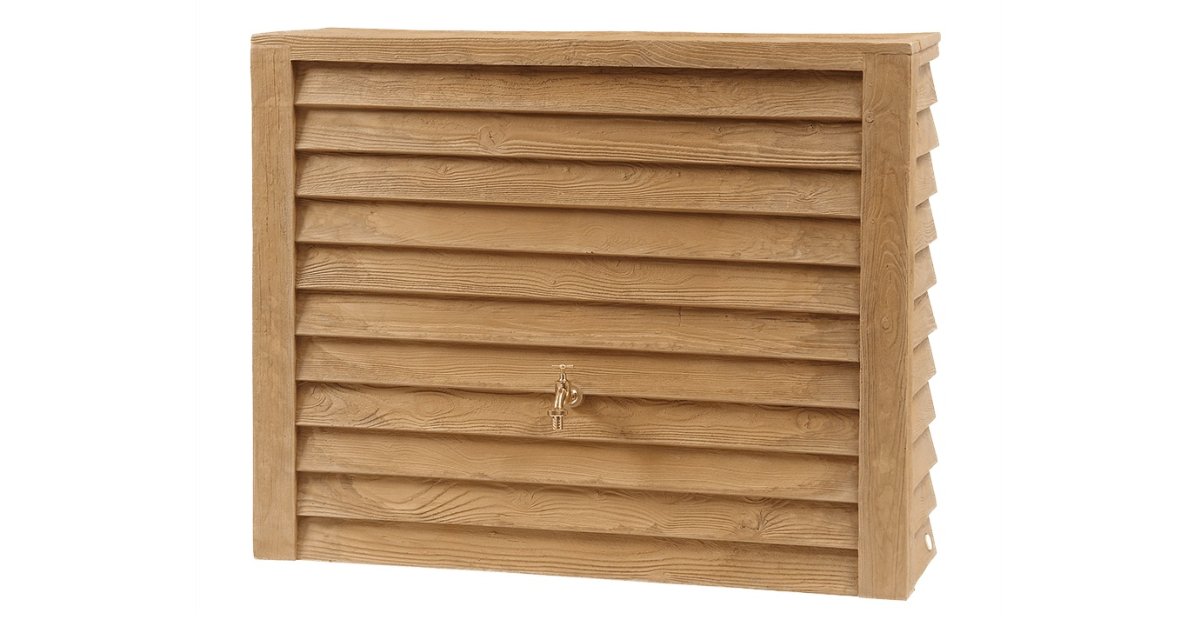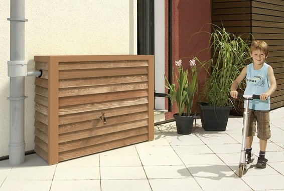 - Besonders robuster Deko-Regenspeicher in täuschend echter Holzoptik zur Aufstellung an der Hauswand