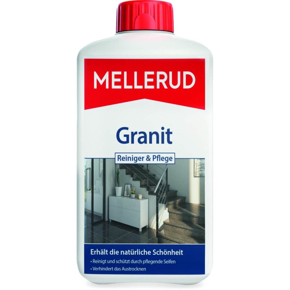 Damit Sie die natürliche Schönheit dieser Oberflächen langfristig erhalten können, haben wir den MELLERUD Granit Reiniger & Pflege in unserem Labor in Deutschland entwickelt. Als spezielle Seife gefertigt, wirkt dieser Reiniger gründlich und tiefenwirksam gegen allgemeine Verschmutzungen der Granit- oder Specksteinoberflächen, aber auch gegen beispielsweise ölige und fettige Verunreinigungen. Dies macht den MELLERUD Granit Reiniger & Pflege zum idealen Helfer bei der Reinigung Ihrer Böden, Wandverkleidungen, Fensterbänken, Küchenarbeitsplatten und vielem mehr aus Granit oder Speckstein.
