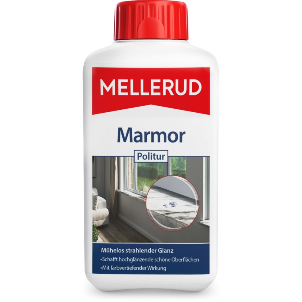 Die MELLERUD Marmor Politur eignet sich hervorragend zur Pflege Ihrer Marmor, Natur- und Kunststein Oberflächen im Haushalt. Dazu zählen zum Beispiel auch besonders hochwertige Oberflächen aus Bianco-Carrara, Jura, Travertin, Solnhofener Platten, Schiefer, Terrazzo und Agglo-Marmor.