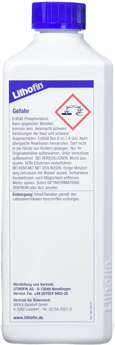 Reiniger für säurefeste Natursteine. Art.Nr.: 162 Artikel-Nr.: 89132500 Hersteller: Lithofin AG Grundpreis: € 8,90/ l